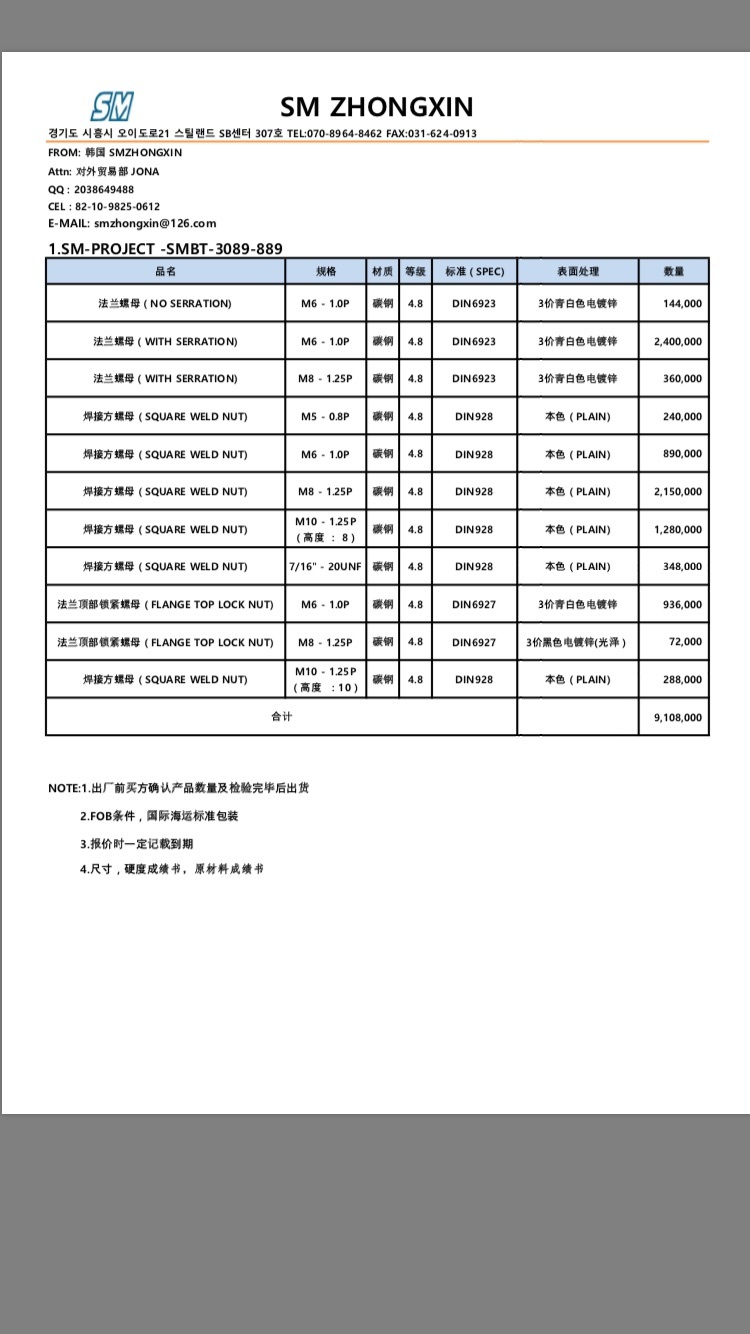 对外贸易部 Jona QQ: 2038649488 MAIL: smzhongxin@126.com PHONE: KOREA 82-10-9825-0612 CHINA 86-15166315118 韩国 SM中鑫 www.smfasteners.co.kr 平等互利,是企业共同生存的法则。双赢, 是我们的目标。