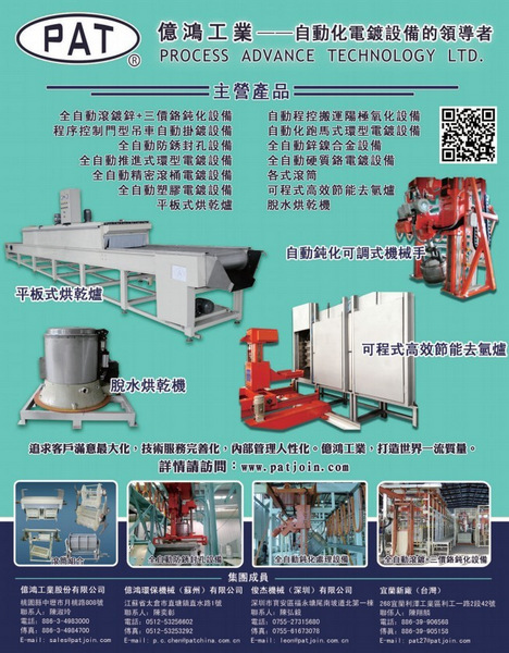 亿鸿环保机械(苏州)有限公司,为亿鸿工业股份有限公司在大陆的子公司。亿鸿工业是台湾历史最悠久的表面处理设备优良制造厂商,专业制造各式工业全自动电镀设备、废气处理设备。产品广泛应用于航空、汽车、电子、能源、医疗、交通及其他各产业市场,先进的电镀设备满足全球客户对电镀技术的要求,产品大量出口至欧美国家,东南亚地区,日本,韩国等地区。 更多信息,敬请联系: