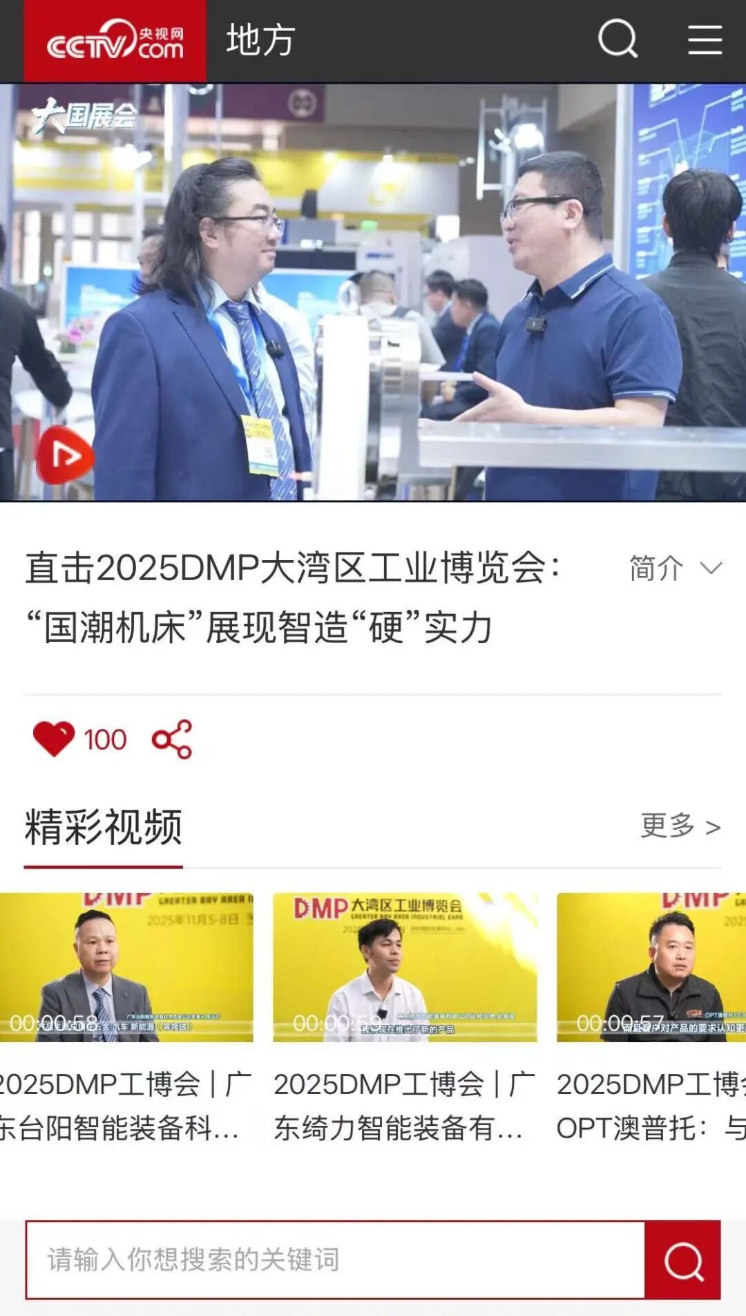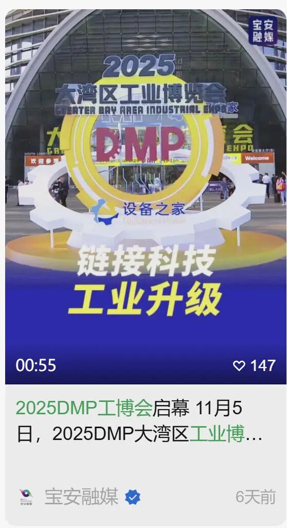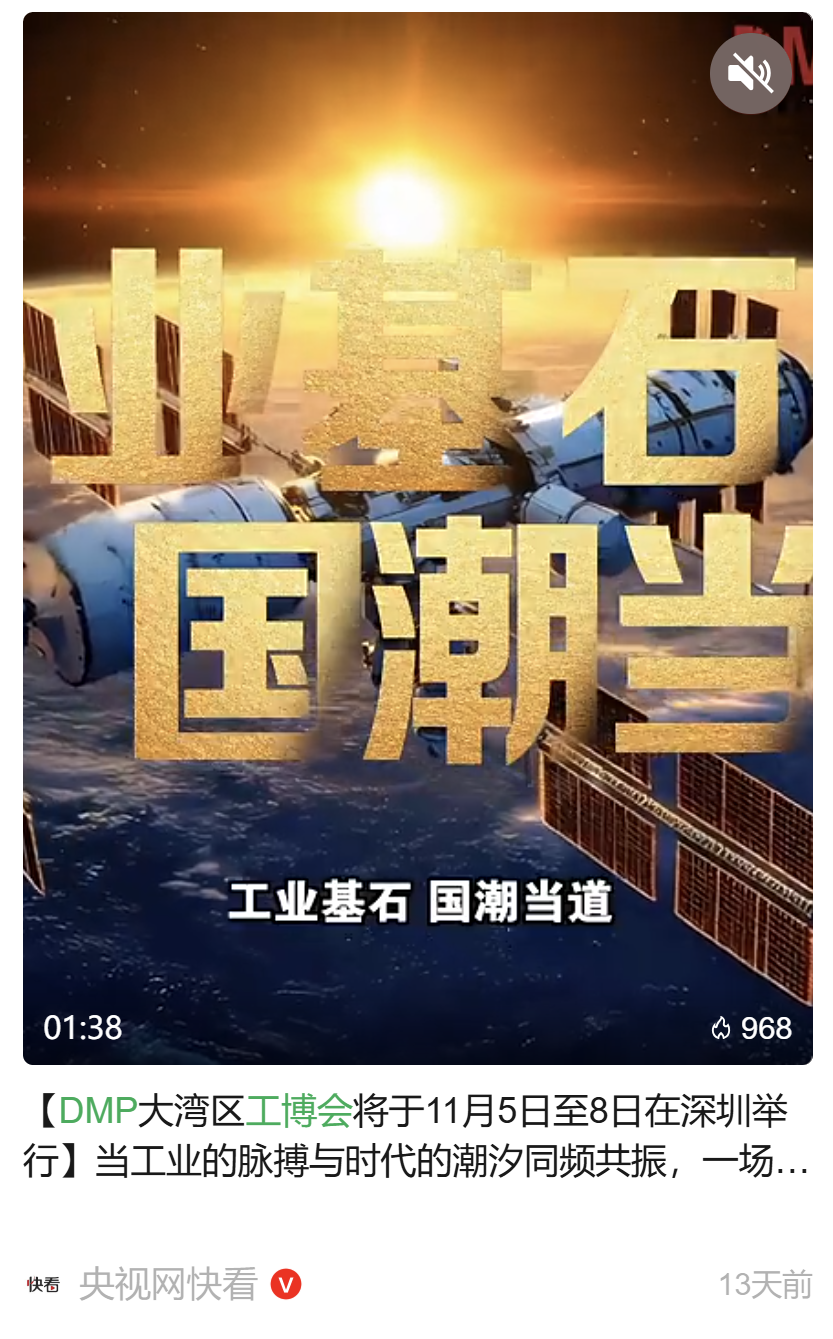“以技术和创新为主导,集技术交流、供需对接、成果转化于一体,已经成为大湾区乃至全国先进制造业技术创新的重要风向标,这就是DMP工博会”——央视网  记者  徐静