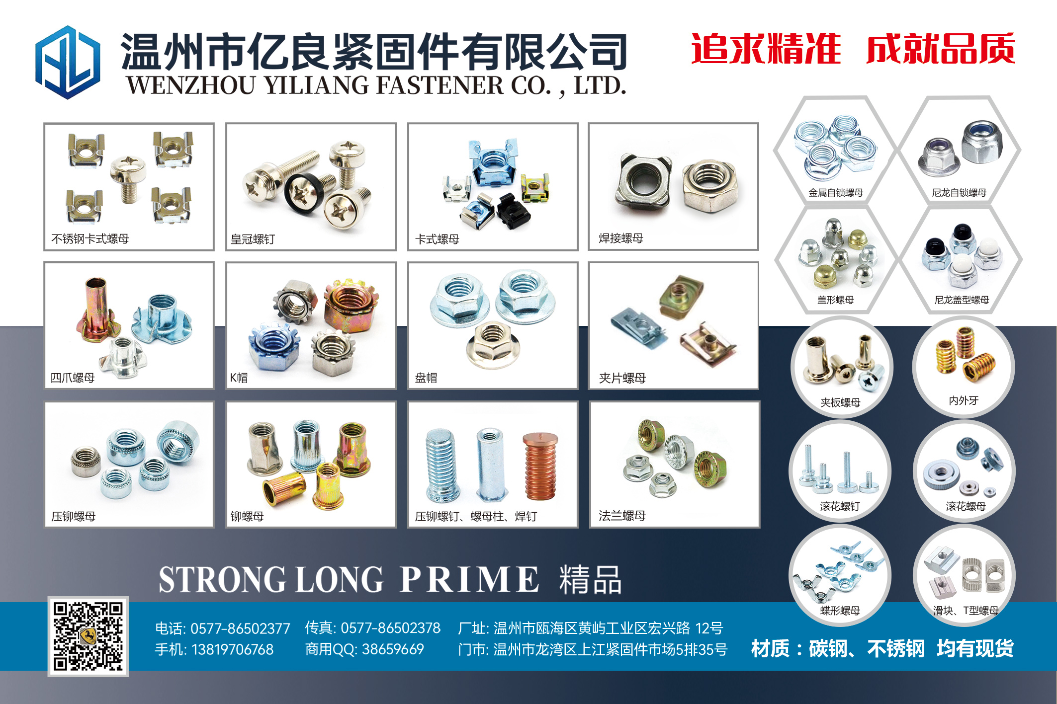 笼式螺母 浮动螺母 带壳螺母 K型放松螺母 K帽 花齿螺母 机箱机柜螺母 钣金螺母 元宝螺母 蝴蝶螺母 拉母 拉帽 拉铆螺母 焊点螺母 T型焊接螺母 T型螺母 T帽 铝型材螺母 T型螺丝 台阶螺母 四爪钉 四脚钉 家具螺母 尼龙袋帽 灯饰螺母 自锁螺母 防松垫圈 机箱机柜螺钉 装饰螺钉 组合螺钉 卡簧 六角螺母