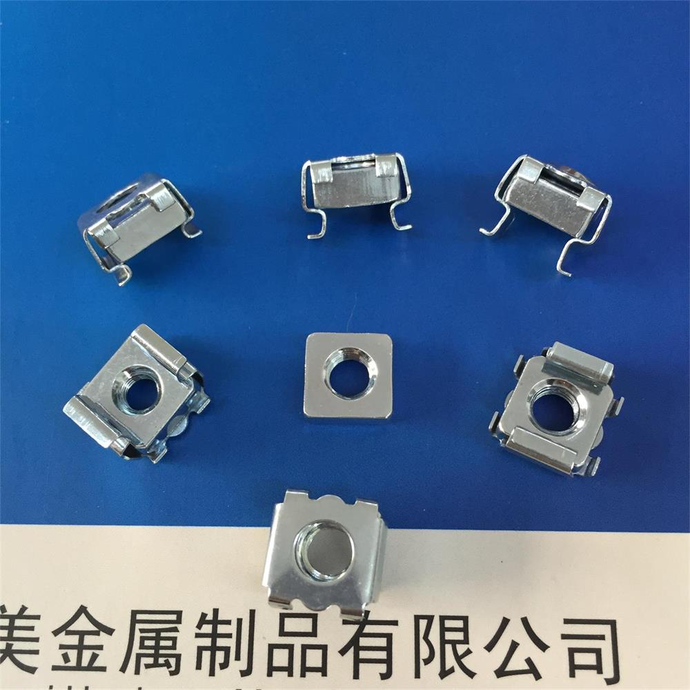 卡式螺母 卡式螺母具有高强度的罗纹紧固作用,用专用工具将其放入预先穿好的方孔或长方形孔中,抽回工具使其固定在金属或其他板材上。安装迅速、便捷,可拆卸重新定位,亦可倾斜定位,并具有以下优点:1仅从板材一侧安装,适合于导轨及场地装配 2具有高承载能力。 卡式螺母M4-M10系列,不锈钢及65Mn外壳,碳钢镀锌方螺母,具有高强度的罗纹紧固作用,用专用工具将其放入预先穿好的方孔或长方形孔中,抽回工具使其固定在金属或其他板材上,安装迅速、便捷,可拆卸重新定位,亦可倾斜定位,是取代焊接螺母的最佳选择,是铁路、车辆、电器箱电器柜、机械模具等行业的首选紧固件,配合皇冠螺钉使用,对机柜面板起到人性化装饰,可根据客户要求定制。