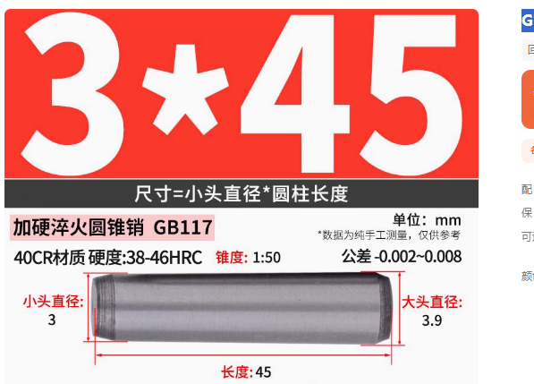 GB117圆锥销实心锥度销子45#钢圆锥定位销钉 加硬淬火固定销