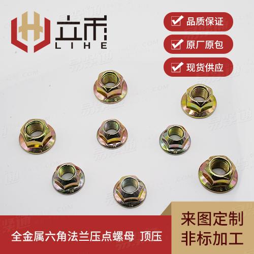 GB6187全金属六角法兰面压点锁紧螺母 规格:M6-M16 级别:8级 10级 可定制12级 表面处理:蓝白锌 彩锌 达克罗 磷化 压点方式:顶压三点