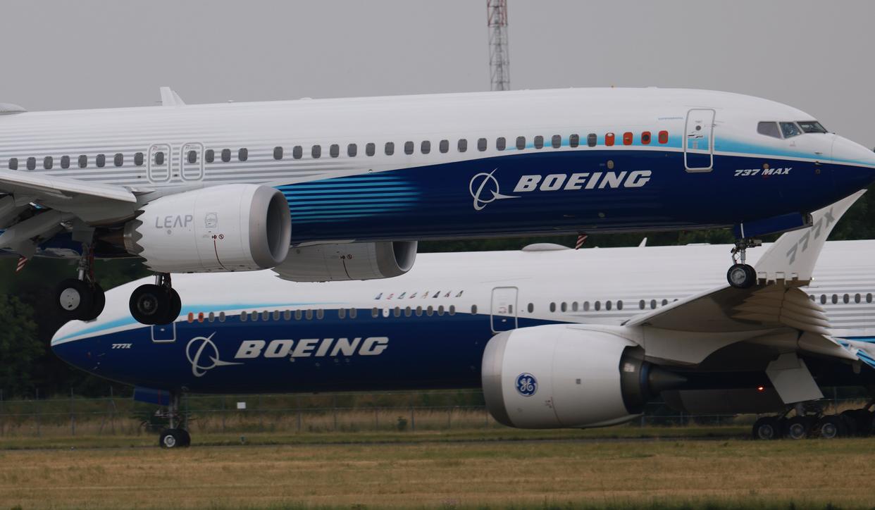 2023年6月19日,在法国巴黎近郊的布尔歇机场举行的巴黎航展上,波音737 MAX和波音777X飞机(下)进行表演 。新华社记者高静摄  调查发现,涉事门塞已在154次航班飞行中逐渐松动,直至最终脱落。波音公司员工告诉调查人员,他们承受巨大工作压力,被迫超速工作并承担不熟悉的任务。24名门组员工均未接受过门塞拆卸培训,仅其中一人曾拆卸过一次门塞,但此人在事发客机组装期间正在休假。门塞重新安装时,门组员工并未参与。