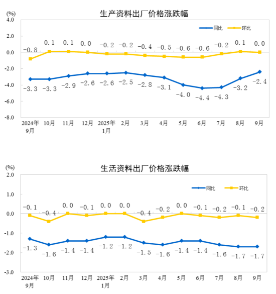 2025年9月份工业生产者出厂价格同比降幅继续收窄