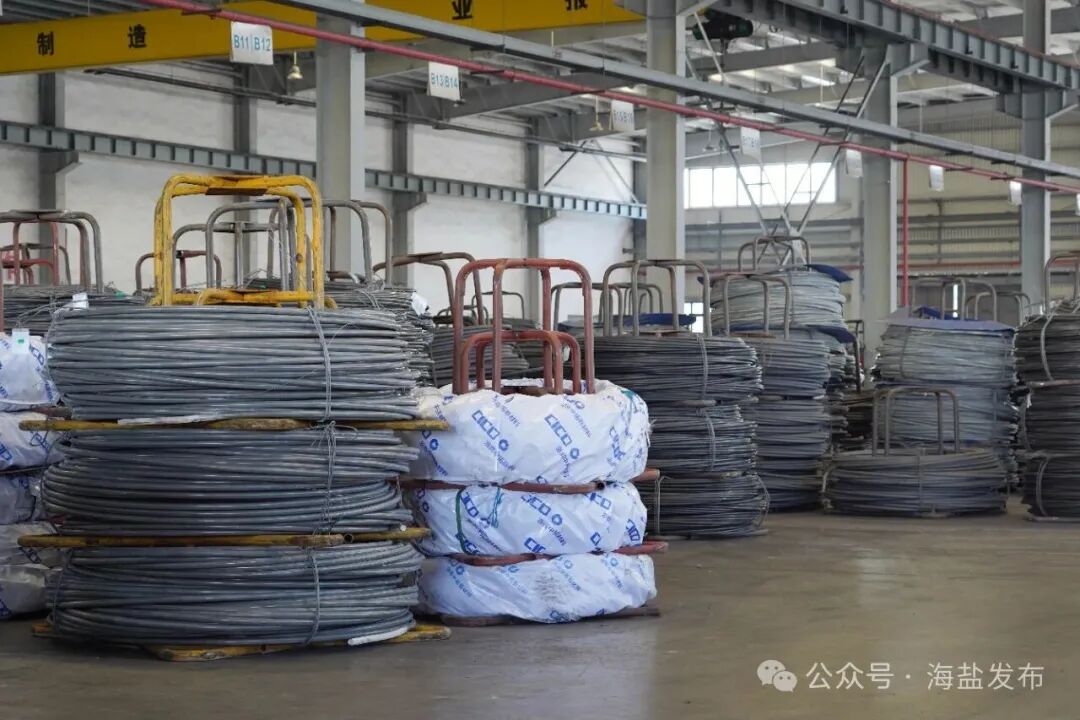 2017年,中拓新材料落地海盐,以冷镦精线为主营产品,补上了海盐紧固件产业链中材料环节的关键一环。冷镦精线正是高端螺丝、螺帽等紧固件的起点。中拓新材料年产精线36万吨,规模居全国首位,主要服务中高端紧固件制造企业。