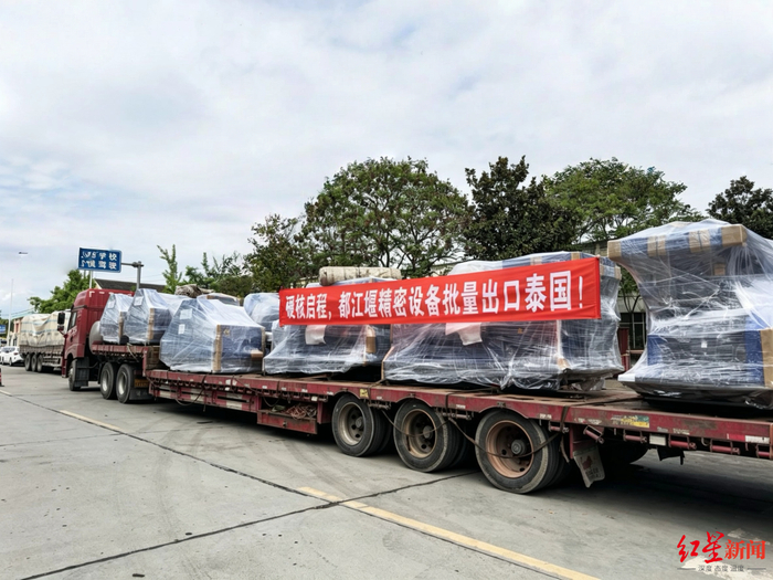 载重车上,“硬核启程,都江堰精密设备批量出口泰国”的标语醒目。近日,成都都江堰市超越机械制造有限公司厂区内,首批智能冷镦成型机及配套搓丝机正式发往泰国。这批价值3000余万元的设备,是泰国新能源汽车及电子产品紧固件生产的关键装备。