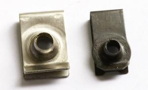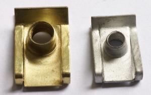 簧片螺母:又名插片螺母、夹片螺母,因其安装快速、便捷,被广泛应用于汽车车辆及机械电气部件的定位安装,有较优良的罗纹紧固作用,M4-M8系列