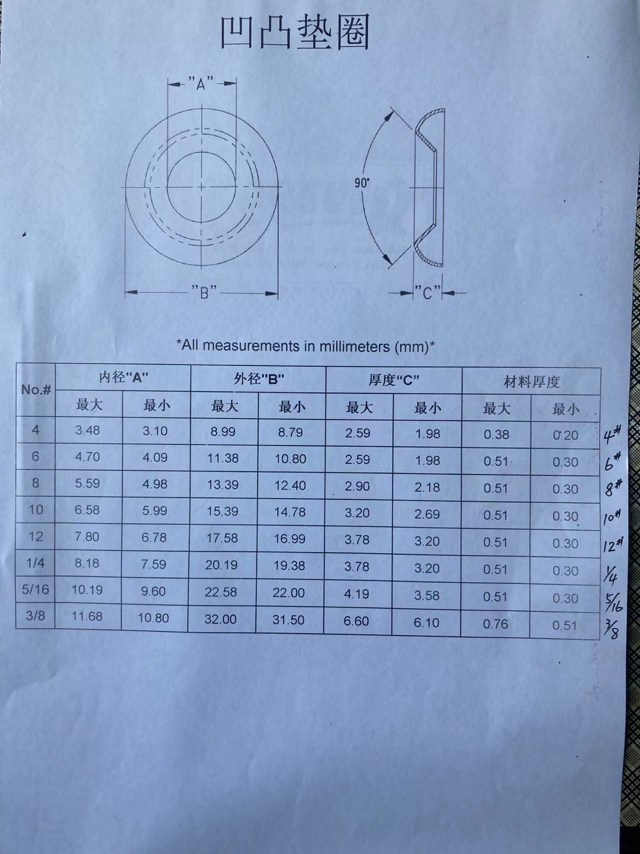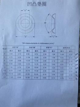 凹凸垫圈,又叫鱼眼垫圈 材料:不锈钢,65MN,弹钢,弹簧钢,黄铜.... 表面:镀锌(蓝白,黄),发黑,达克罗... 规格: 所有尺寸 我司另外还专业生产内外齿锁紧垫圈DIN6797,内外锯齿锁紧垫圈DIN6798,锥形弹簧垫圈DIN6796,波形和鞍形弹簧垫圈DIN137,锥型双面斜印花垫圈DIN9250,锥形弹簧垫片DIN2093...等德标垫圈和法标锥形半印花垫圈NFE25-511,美标内外齿垫圈ASME.B18.21.1. 我司可根据客户图纸定做冲压件, 欢迎广大新老客户来图来样咨询和加工