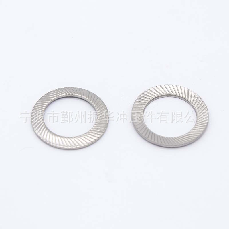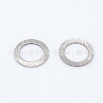 工厂直销DIN9250 S型 A2 304SS 量大价优 材料:不锈钢,65MN,弹钢,弹簧钢,黄铜.... 表面:镀锌(蓝白,黄),发黑,达克罗... 规格: M1.6-M30 所有尺寸 我司另外还专业生产内外锯齿锁紧垫圈DIN6798,扣紧螺母DIN7967,锥形弹簧垫圈DIN6796,波形和鞍形弹簧垫圈DIN137,锥型双面斜印花垫圈DIN9250,锥形弹簧垫片DIN2093...等德标垫圈和法标锥形半印花垫圈NFE25-511,美标内外齿垫圈ASME.B18.21.1. 我司可根据客户图纸定做冲压件, 欢迎广大新老客户来图来样咨询和加工.