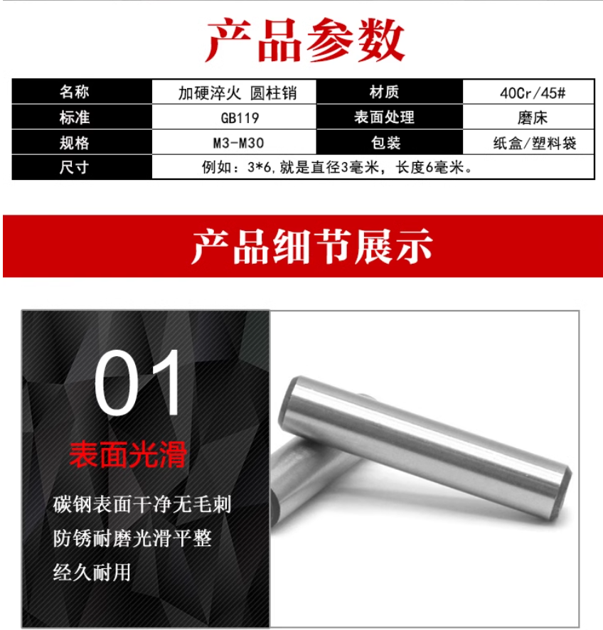 GB119圆柱销45#钢加硬淬火定位销实心固定销钉M3M4M5M6M8M1012M30M40M50