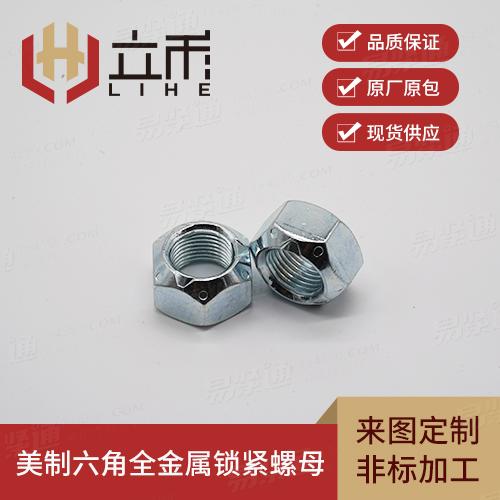 GB6187/DIN6927全金属六角法兰面压点锁紧螺母 规格:M6-20 级别:4级 8级 10级 可定制12级 表面处理:本色 蓝白锌 彩锌 黑锌 热镀锌 磷化 GB6185/6184/DIN980/6925全金属六角锁紧螺母 气标Q332/Q334 规格:M6-30 级别:4级 8级 10级 可定制12级 表面处理:本色 蓝白锌 彩锌 达克罗 热镀锌 磷化 美制六角全金属锁紧螺母 规格:1/4-20 5/16-18 3/8-16 7/16-14 1/2-20 1/2-13 9/16-18 5/8-11 3/4-10 3/4-16 级别:2级 5级 8级 表面处理:本色 蓝白锌 彩锌 黑锌 达克罗 磷化