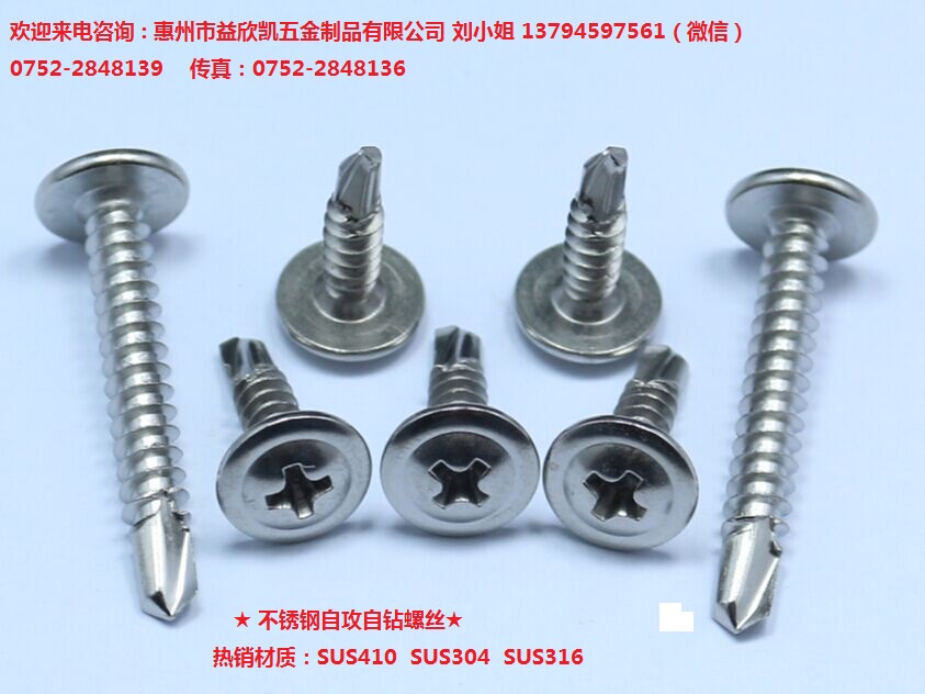 主营产品: 不锈钢钻尾螺丝 碳钢钻尾螺丝 自攻螺丝 304不锈钢钻尾螺丝 316不锈钢钻尾螺丝 410不锈钢钻尾螺丝